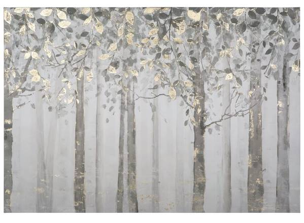 Yosemite Home Decor presents a stunning printed canvas with foil embellishments throughout. The piece of artwork depicts a line of thin trees during autumn. The muted grey tones throughout allow the embellished gold leaves to pop off the canvas. This piece of artwork would complement any room in the home.Read More